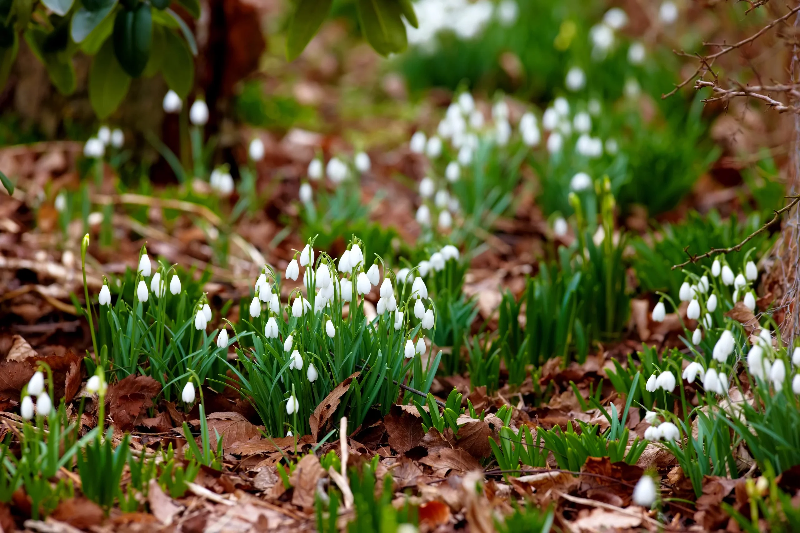Schneeglöckchen entfalten ihre volle Wirkung erst über die Jahre. In Kombination mit weiteren Frühblühern wie Krokus oder Winterling entstehen lebendige Flächen, die sich jedes Jahr weiter verdichten. Ein gut entwickelter Bestand wirkt natürlich, ruhig und gleichzeitig eindrucksvoll.